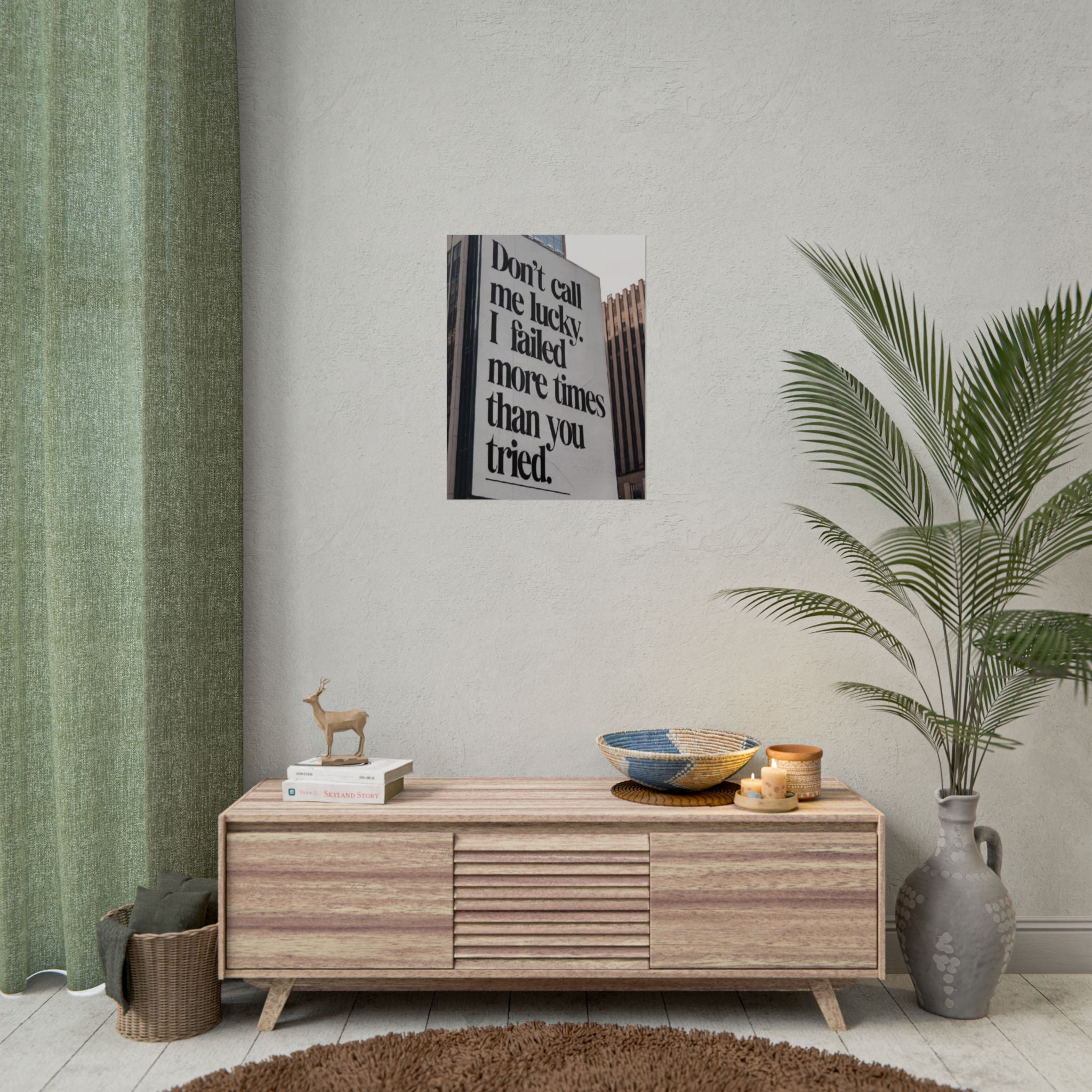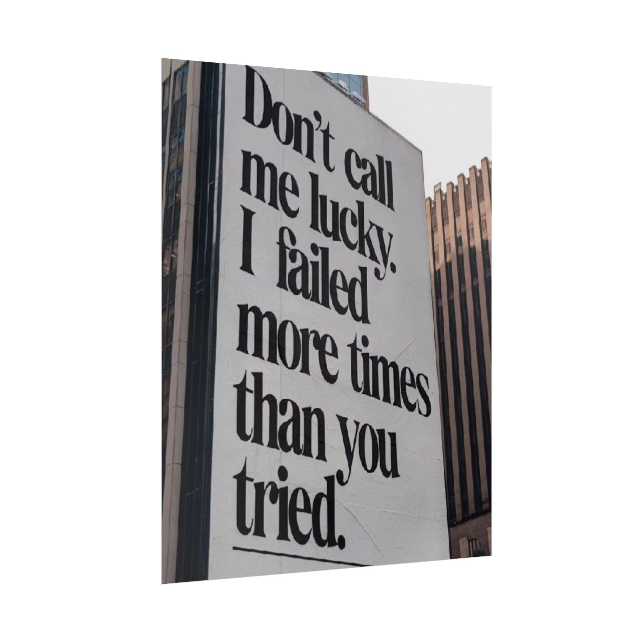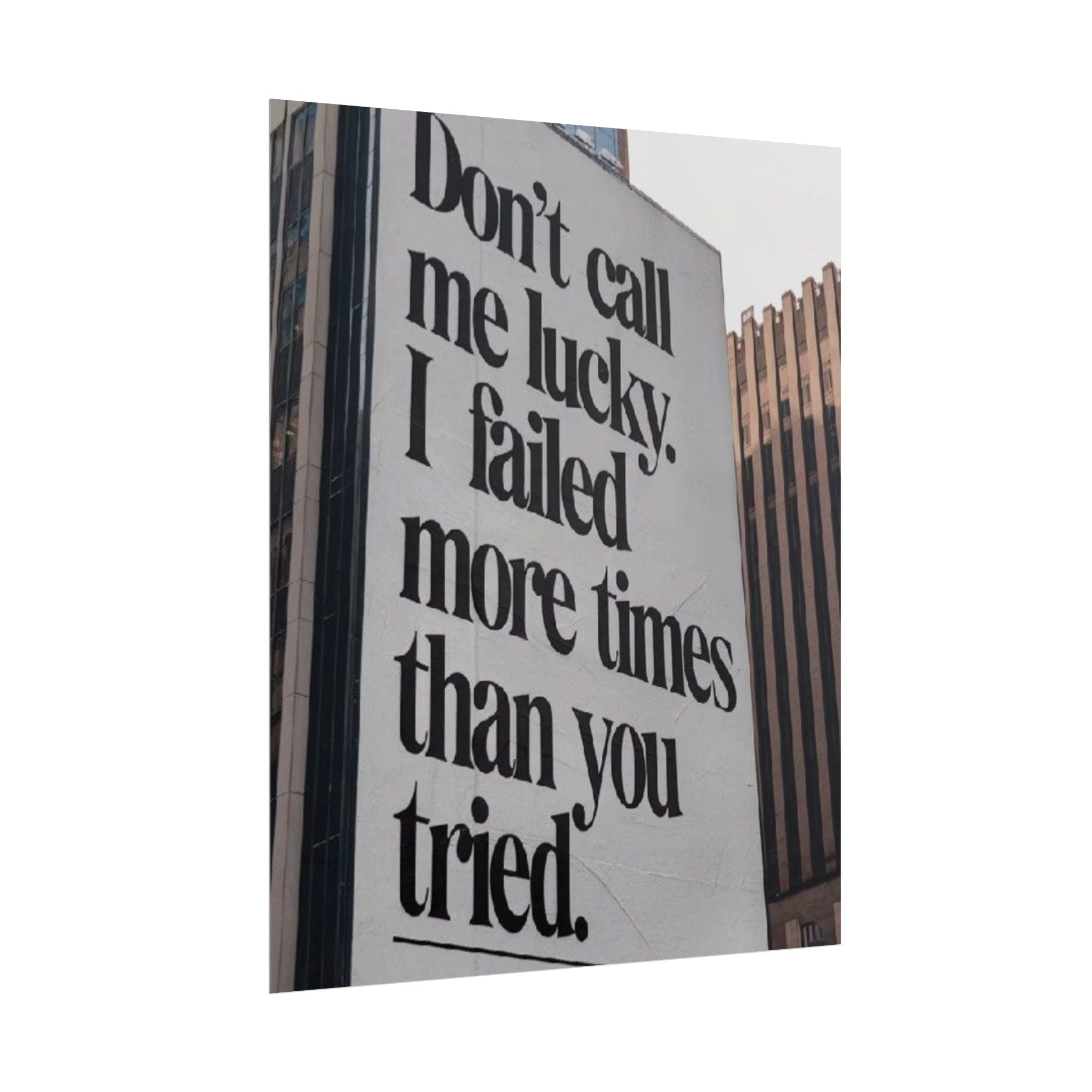 A reminder that success isn’t about luck — it’s about persistence, resilience, and learning from failure. This poster declares it loud and clear: Don’t call me lucky. I failed more times than you tried.